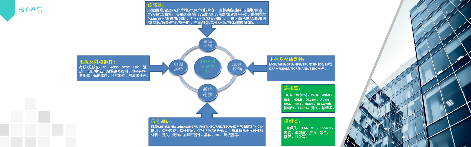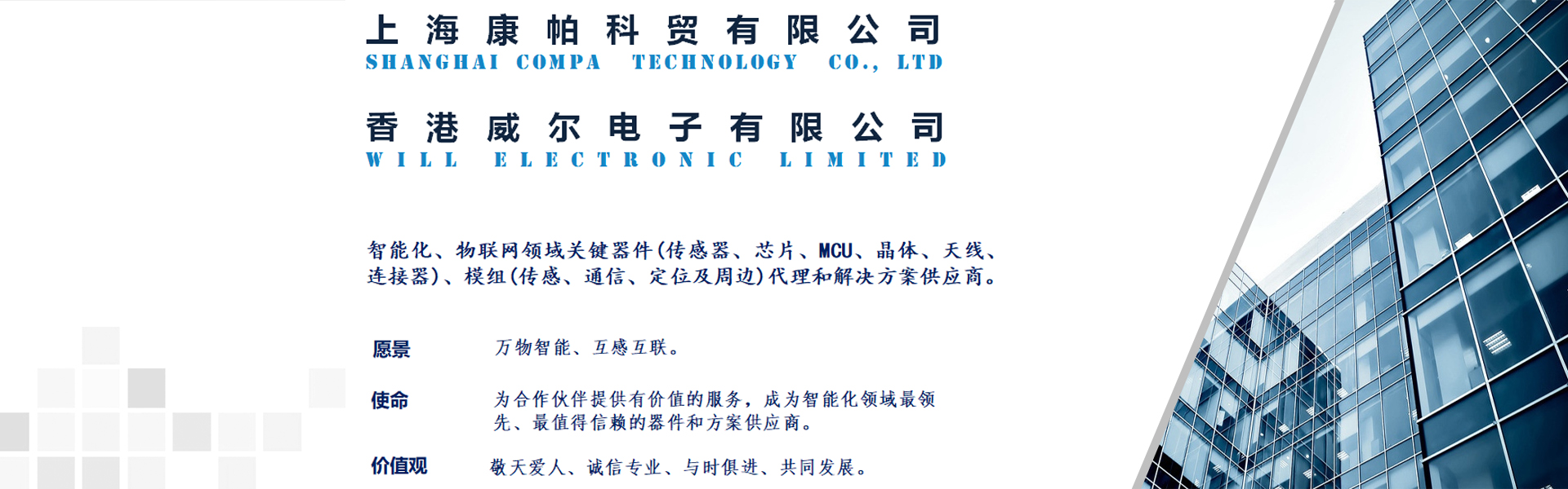 上海康帕科貿有限公司/香港威爾電子有限公司成立于2003年1月,分別對應人民幣含稅和外幣業務,是國內較早從事元器件分銷的專業代理商之一。 目前公司致力于物聯網和智能化領域相關的傳感器、通信/定位芯片和模組、MCU及與之配套的周邊芯片、晶體、連接器、按鍵、開關、線纜等諸多產品經銷代理業務。從客戶產品定義和開發階段開始,配合客戶需求提供綜合的器件、模組及整體方案技術支持及評估選型服務,并在大批量階段提供持續的供貨和售后服務。涉及的主要市場為家電家居、智能硬件、安防監控、表計儀器、健康醫療、電動工具等等。